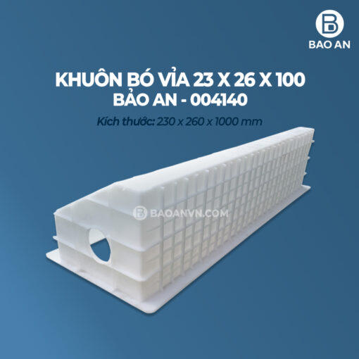 Khuôn bó vỉa bê tông 23x26x100 là mẫu khuôn đúc được Bảo An sản xuất chuyên biệt cho các đơn vị sản xuất bó vỉa phục vụ công trình giao thông, sân vườn, hạ tầng đô thị. Với kích thước tiêu chuẩn 230 x 260 x 1000 mm, khuôn giúp tạo ra sản phẩm bó vỉa đồng đều, thẳng đẹp và có độ bền vượt trội.