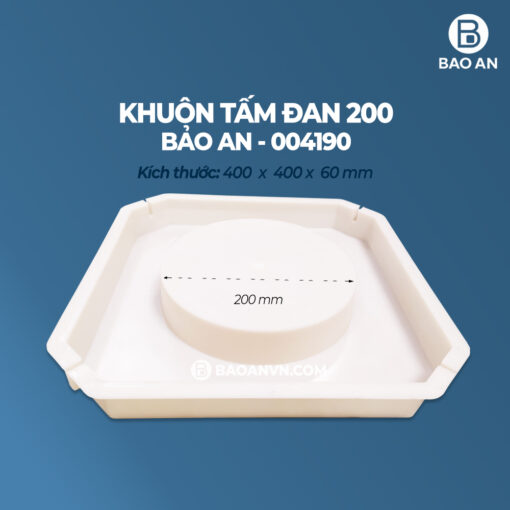Khuôn tấm đan 200 là dòng khuôn nhựa chuyên dụng do Bảo An sản xuất, được thiết kế dạng hình vuông 400 x 400mm với lỗ tròn đường kính 200mm ở giữa. Sản phẩm được chế tạo từ nhựa kỹ thuật cao cấp, chịu lực tốt, tái sử dụng nhiều lần, giúp tiết kiệm chi phí và tạo ra các tấm bê tông thành phẩm đạt chuẩn, độ bền vượt trội.