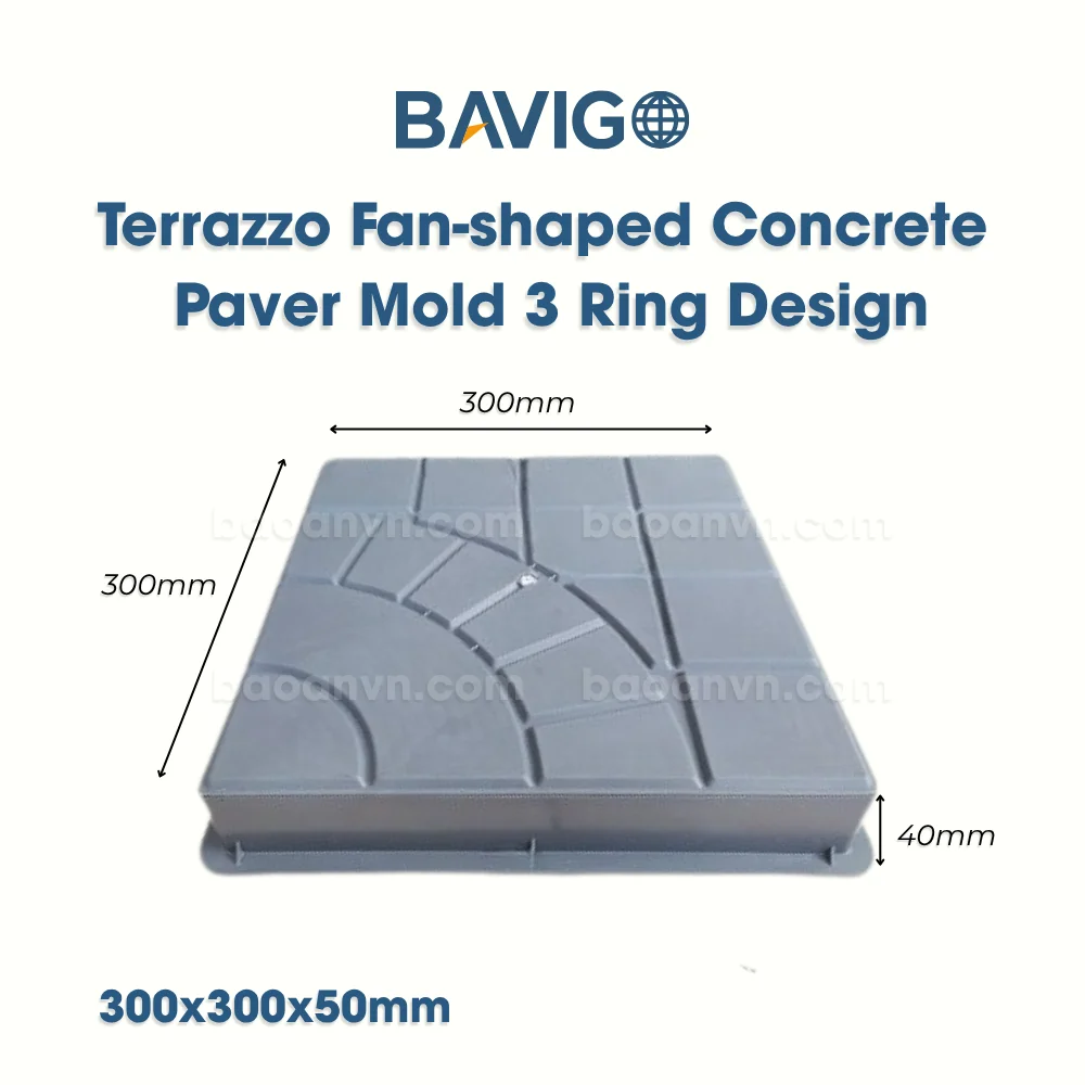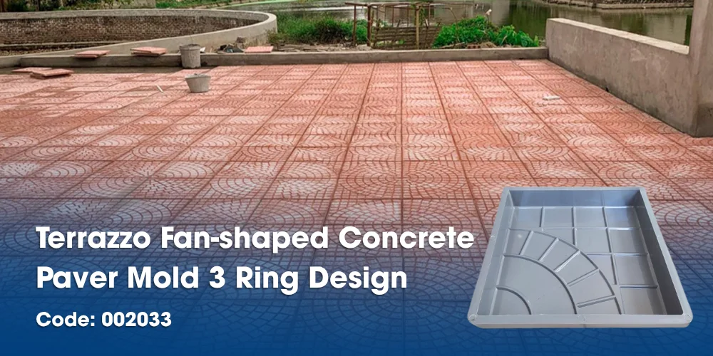 Terrazzo Fan-shaped Concrete Paver Mold 3 Ring Design – 002033 is a professional mold engineered for manufacturing terrazzo paving tiles with a striking triple-fan motif. The pattern delivers visual rhythm and reliable slip resistance for outdoor applications. Made from high-quality virgin PP plastic, the mold offers strength, flexibility, easy cleaning, and consistent demolding—ideal for workshops seeking stable, repeatable output at lower cost.